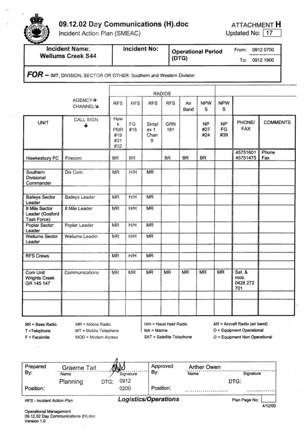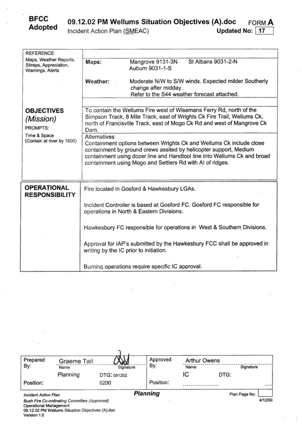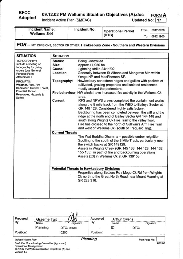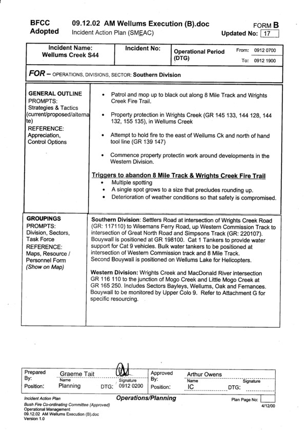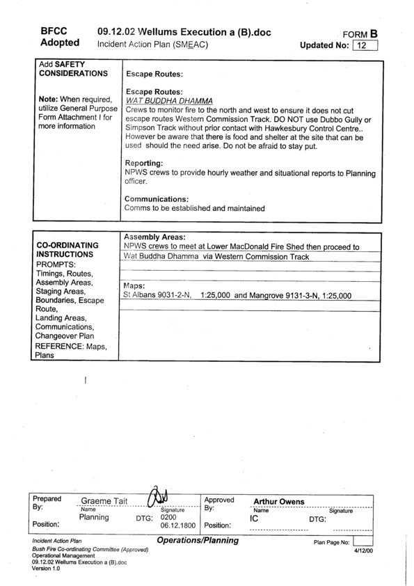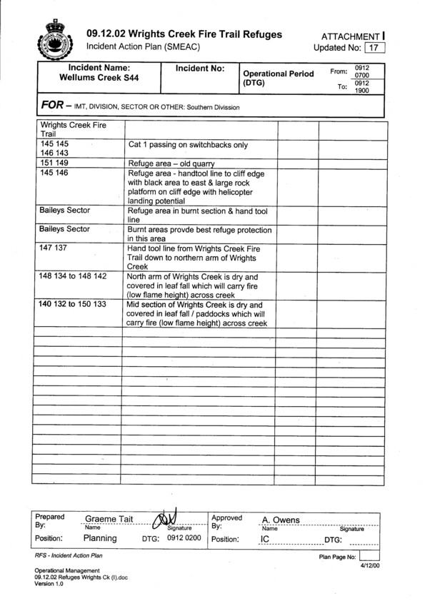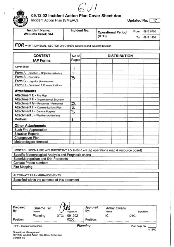 Cover sheet for Incident Action Plan for 9.12.02