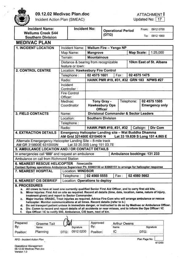 Incident Action Plan ...Attachment I