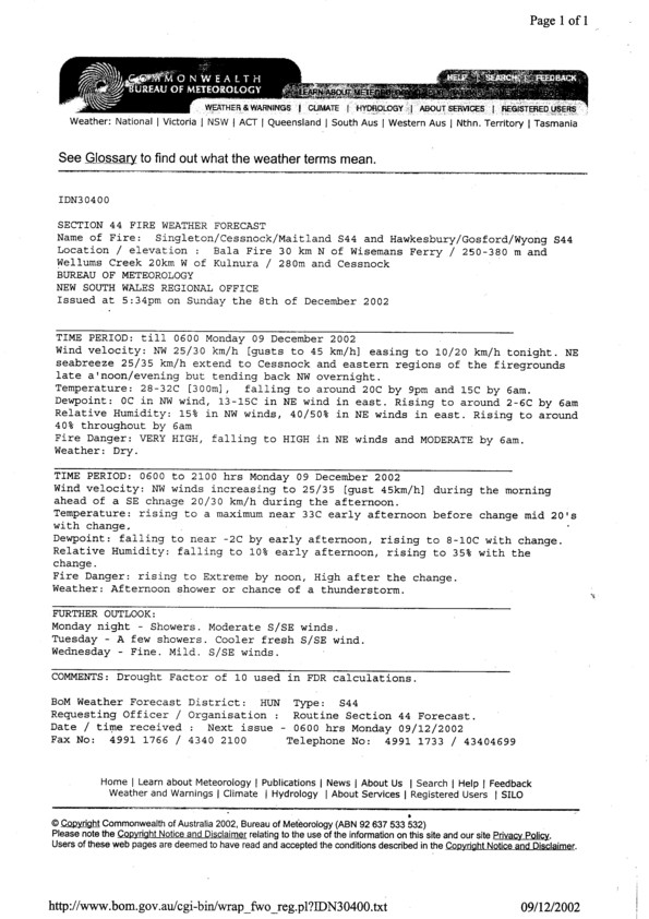 Incident Action Plan ...Weather Forecast for 9.12.02