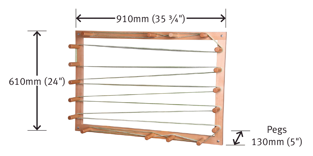 To create a warp of correct size and tension a warping frame is essential. This strong frame has pegs set firmly at regular intervals. Holds a 11m (37ft) warp.